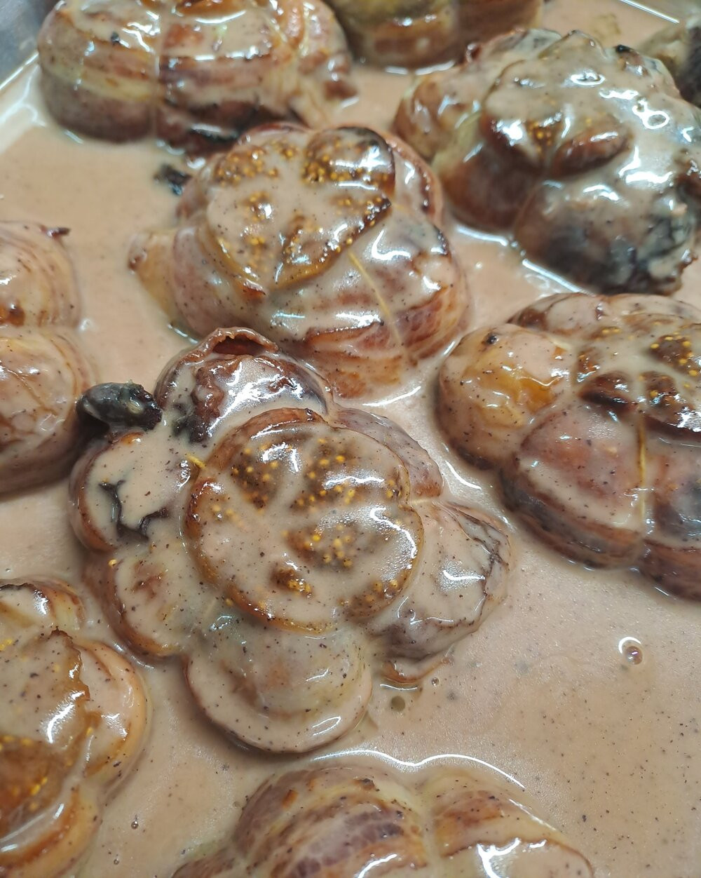 Ingrédients : Cuisse de pintade désossée, farce de volaille au foie gras et figues, bouillon de volaille, PORTO (SULFITES), CREME(LACTOSE), pommes de terre, BEURRE, OEUFS, haricots verts, sel poivre
